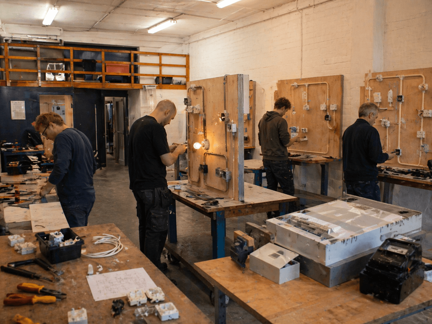 Je gaat niet alleen theorie leren, maar vooral zelf aan de slag. Van het lezen van een elektrotechnische tekening tot het aansluiten van schakelaars en stopcontacten: je bouwt tijdens de cursus je eigen werkende schakelingen.